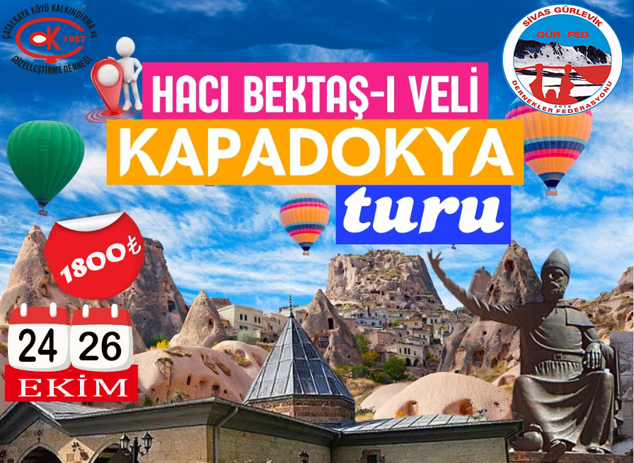 24 Ekim Cuma akşam çıkış ve 26 Ekim Pazar Günü dönüş olmak şartıyla Hacı Bektaşi Veli ziyaretimiz olacaktır.